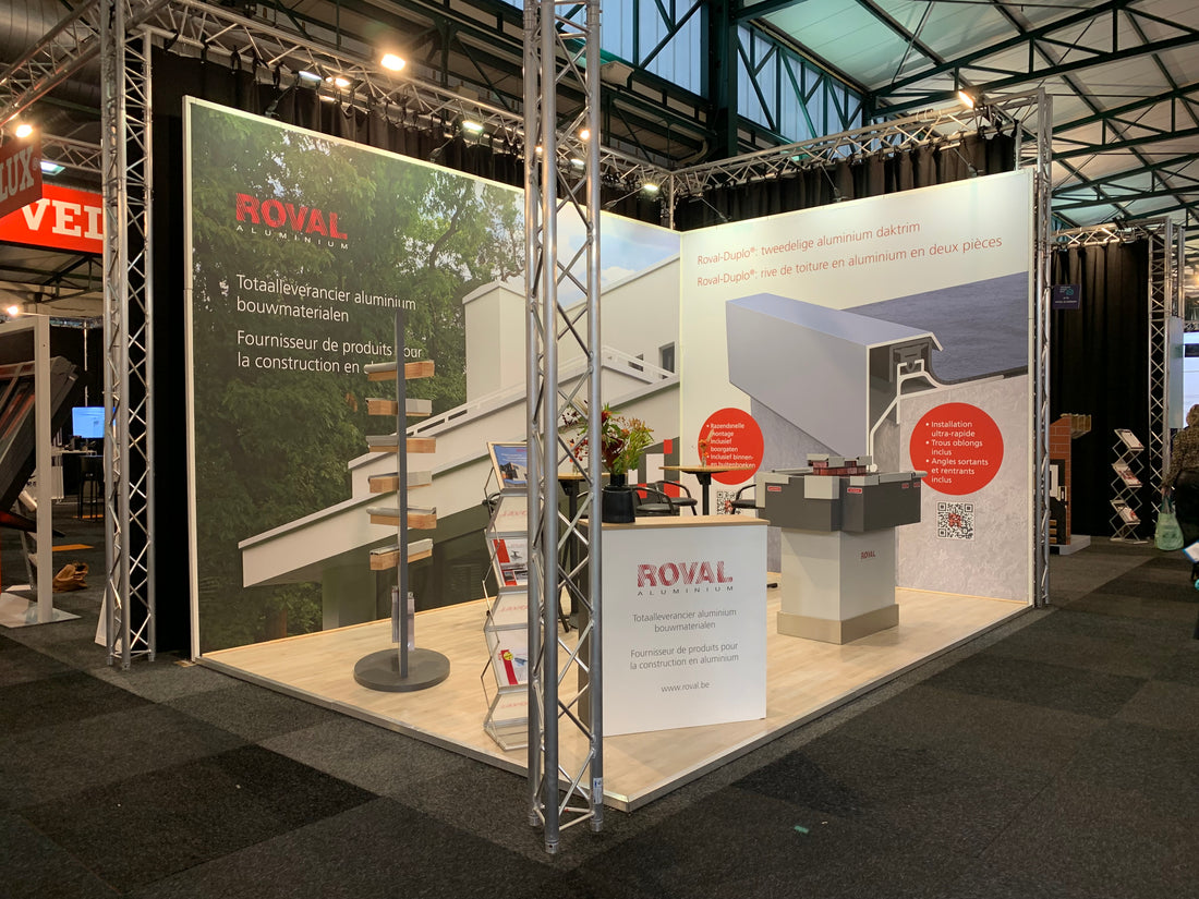 The booth we specially designed and built for Roval is a true eye-catcher with its impressive height of 355 cm. The beautiful images, printed on fabric and prominently displayed, immediately convey the message that Roval wants to convey to visitors.